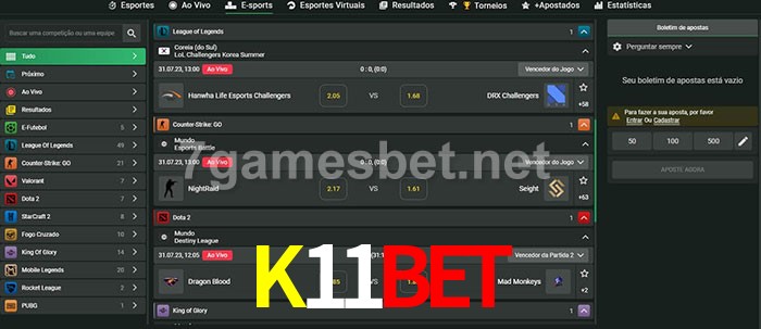 O K11Bet oferece uma grande seleção de opções de apostas em e-sports com probabilidades competitivas